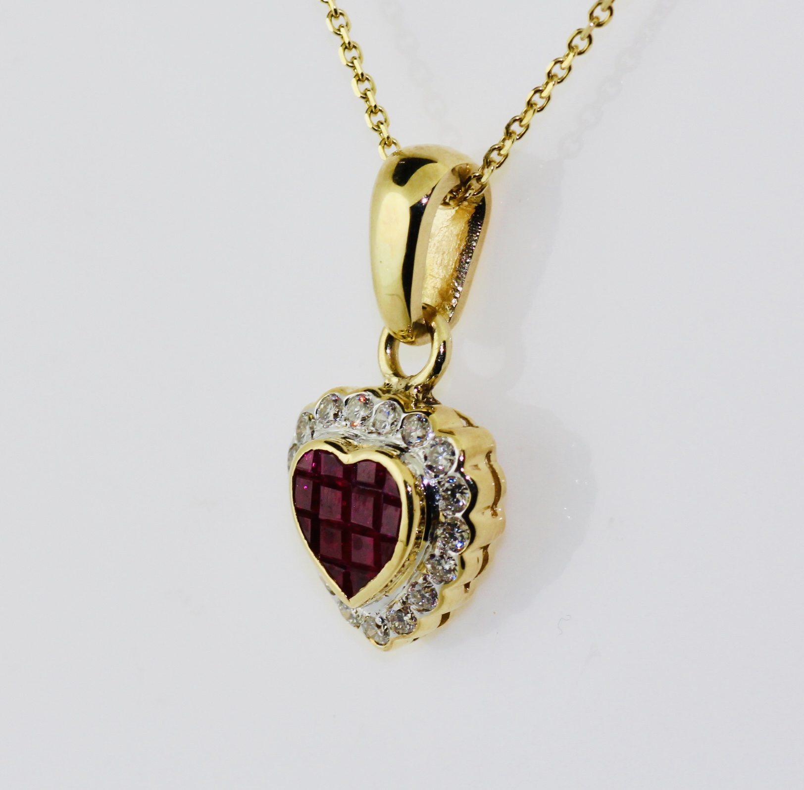 14K Yellow Gold Unique Diamond Embedded Heart Shaped Necklace (with chain)