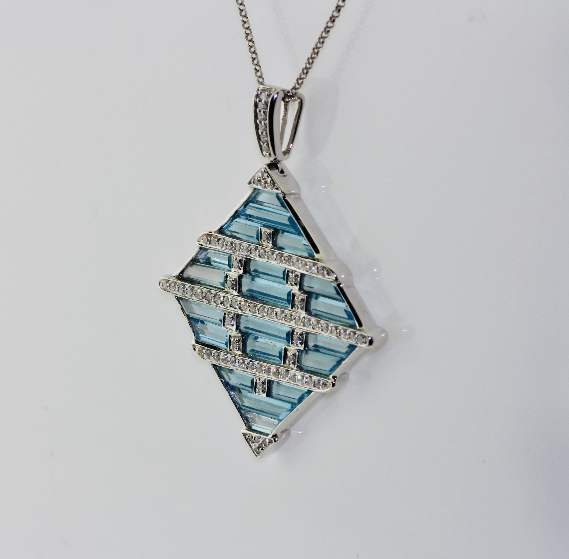 • 18K White Gold Blue Topaz and Diamond Pendant