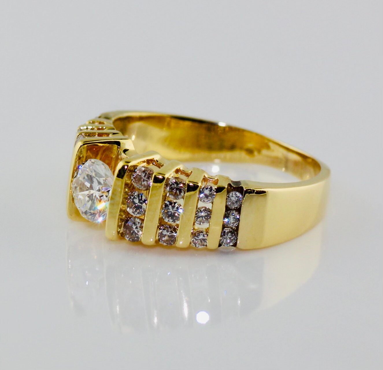 14K Yellow Gold 6 prong Baguette Diamond (0.75ctw, SI1, G) Setting (CZ Center)